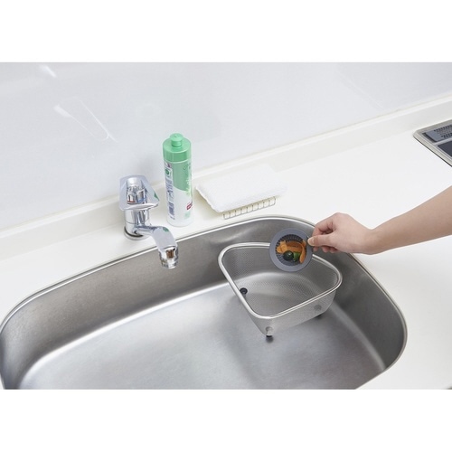 溜めずにポイ!一人暮らしなどのミニキッチンにピッタリの80mmの流し用ゴミ受けです。 ゴミカゴの上に置くだけなので、片手でパッと排水口のお掃除ができます。 |