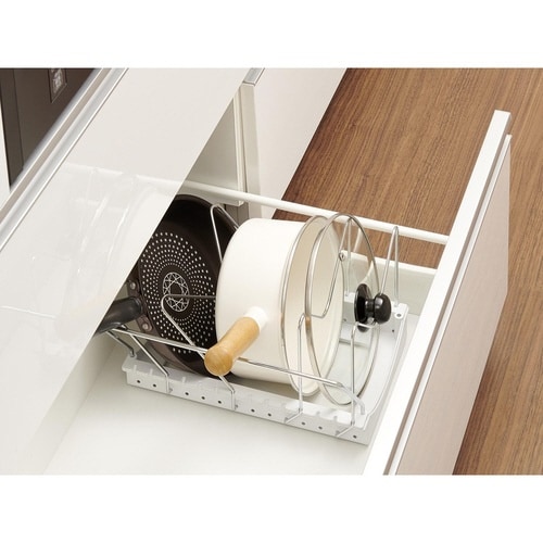 ワイヤーの取り付け方を変えるだけで縦置きからななめ置きに置き方を変えることができます。 収納する物の幅に合わせてワイヤーは2cm間隔で調節することができます。 |