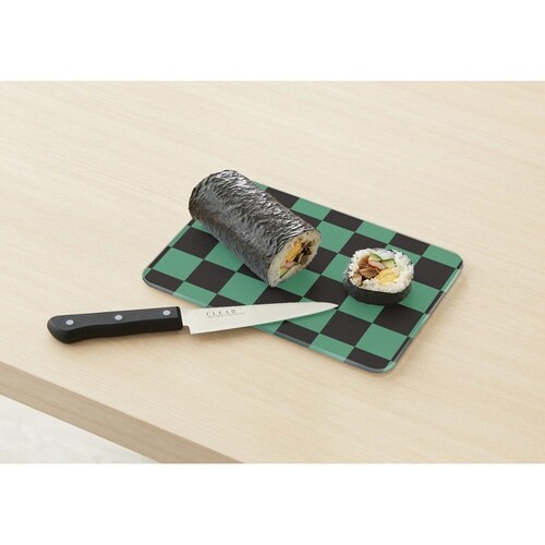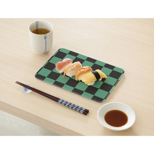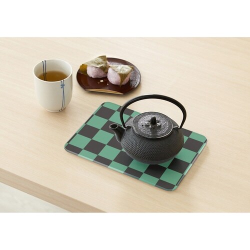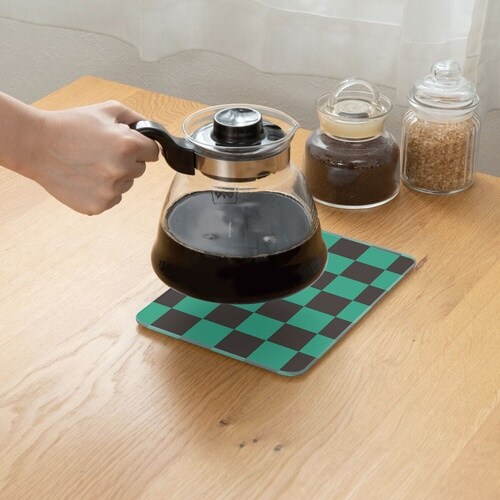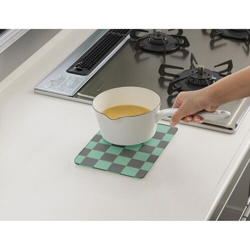 キッチントッププレート 鍋敷き 耐熱ガラス製 和柄 22.6×16.2cm ガラス まな板 市松