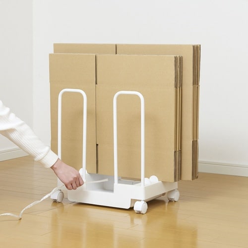 かさばるダンボールをまとめて収納 梱包道具もまとめて収納 収納したまま簡単結束 保管方法に困る紙袋収納として バスグッズ収納やランドリー用品にも |