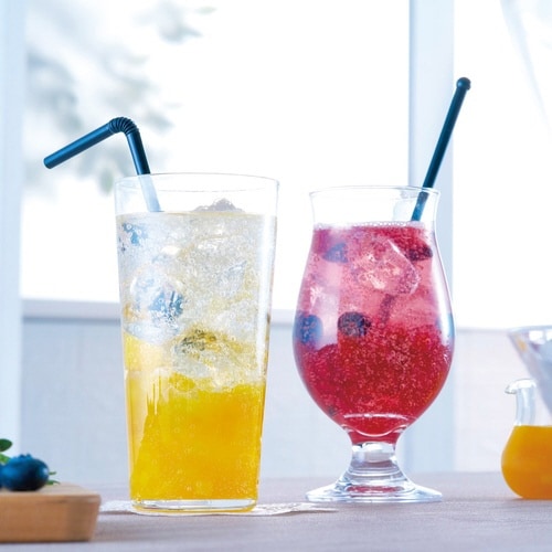 薄づくりでスッキリとした口当たりのタンブラー420mlです。 シロップ、焼酎、ウイスキーなどを「ソーダ割り」するのにおすすめです。 氷や果物を入れやすい天開形状です。 |
