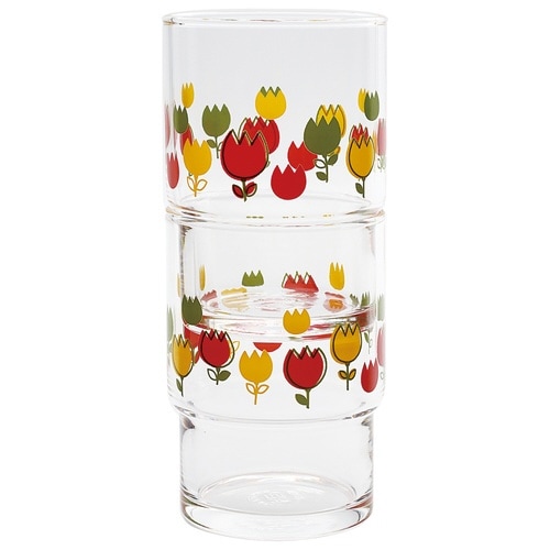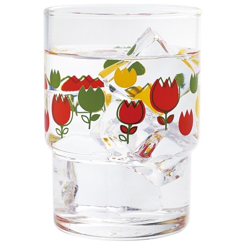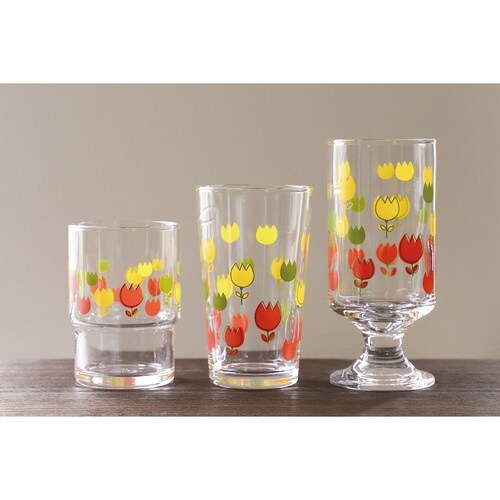 グラス 250ml スタックグラス 昭和のプリントグラス ガラス チューリップ