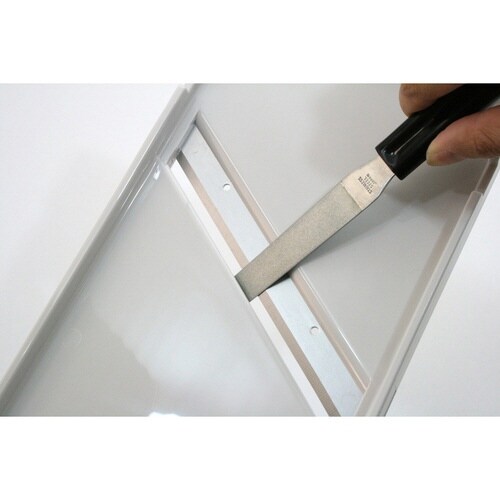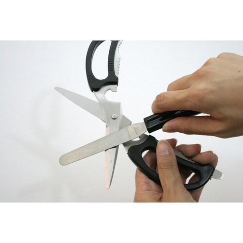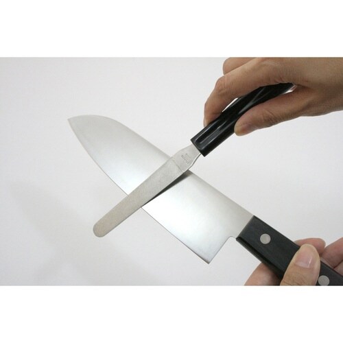 包丁などの刃に当てて、なぞるように刃先へ数回滑らせるだけで簡単に研げるシャープナーです。 切れ味の悪くなった包丁が、これ一本で切れ味がよみがえります。 刃先に当てるだけで、最適な角度にしなります。 |