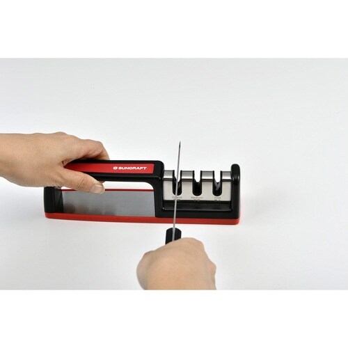 包丁のことを想った3段階シャープナー 安定して握りやすいハンドル |