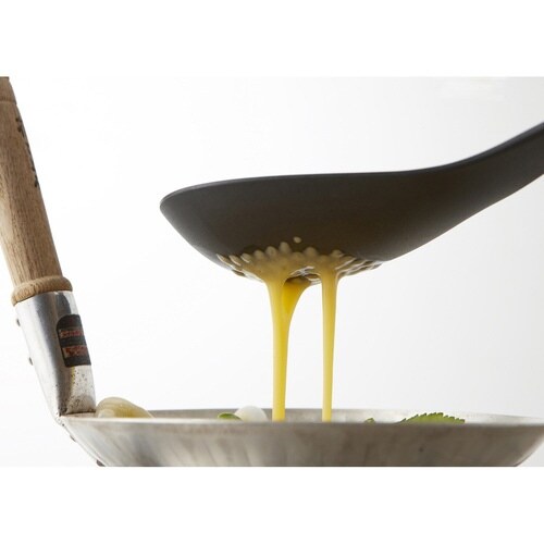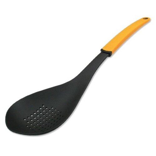 フライパンや鍋を傷つけにくいフッ素樹脂コーティングしたナイロン製のザル型スプーンです。 握りやすい樹脂製グリップです。 「すくう」「そそぐ」がスムーズにできます。 |
