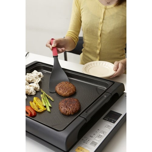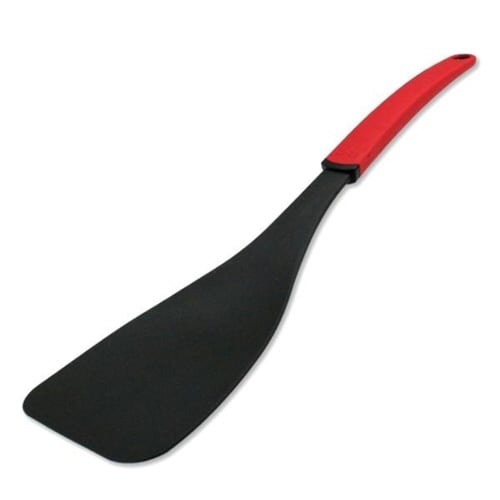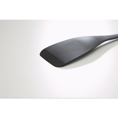 フライパンや鍋を傷つけにくいフッ素樹脂コーティングしたナイロン製のターナーです。 握りやすい樹脂製グリップです。 ほどよい角度で「すくう」「かえす」がスムーズにできます。 |
