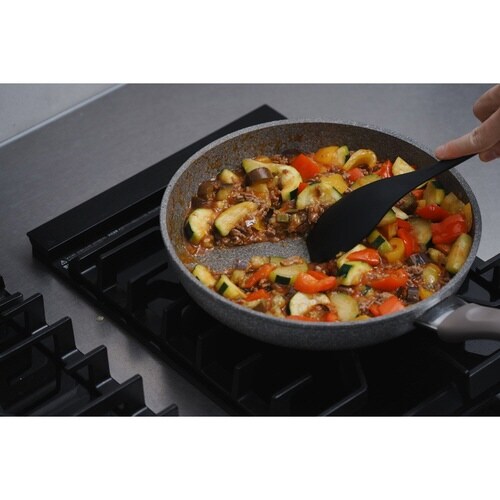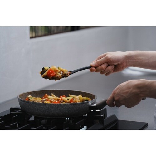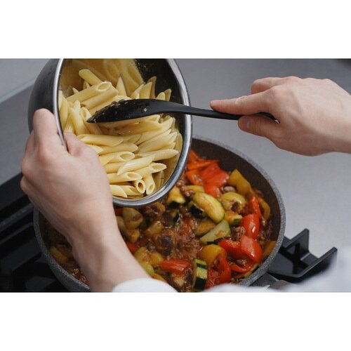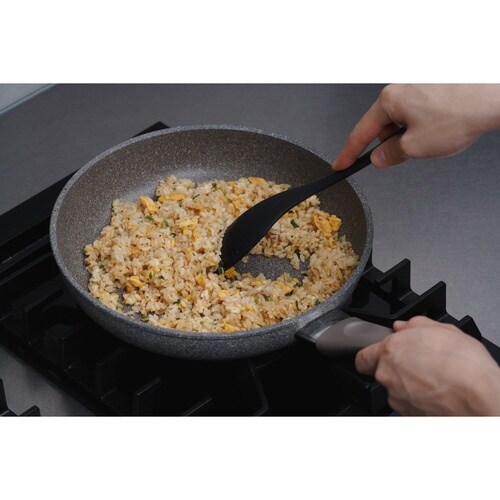 収納に困らないショートサイズのスプーンです。 先端のストレート部分がフライパンや鍋にぴったり沿うので、食材を余すことなくかき集められます。 |