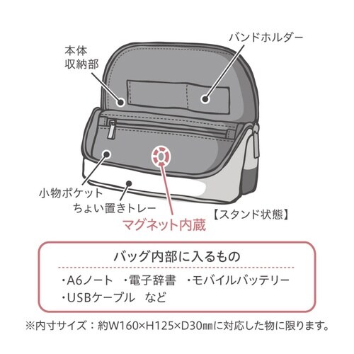 仕事道具をまとめて入れられ、開くとスタンド代わりに使えるバッグインバッグです。 持ち運びしやすいコンパクトサイズなので、フリーアドレス&ノマドワークにピッタリです。 |