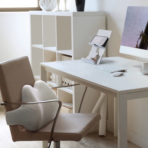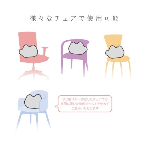 様々な姿勢をフォローして、デスクワークを快適にするフォロワークッションです。 有機的な曲面形状で、腰回りに心地よくフィットします。 オフィスチェアだけでなく、様々なチェアで使用可能です。 |