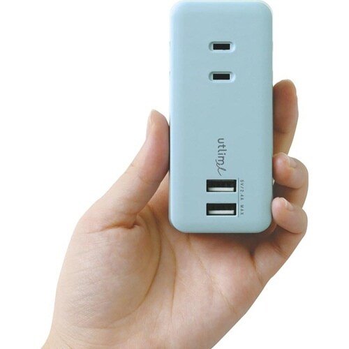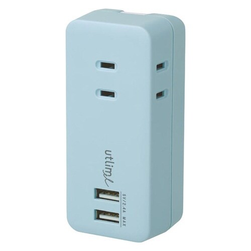 3口コンセント 直挿しタイプ USBポート付 ユートリムエル ライトブルー