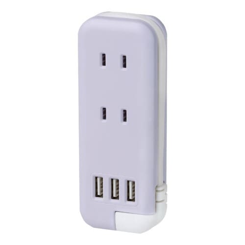 コンセント タップ スリムポータブルコンセント USB‐A 3ポート ユートリムエル ポーチ付 バイオレット