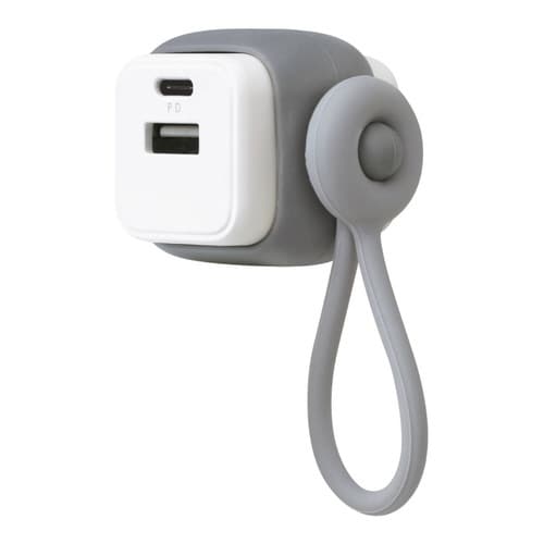 2台同時に充電できるUSBポート付き(Type‐A/Type‐C)充電器です。 USB PD対応なので、急速充電可能です。(Type‐Cのみ) |