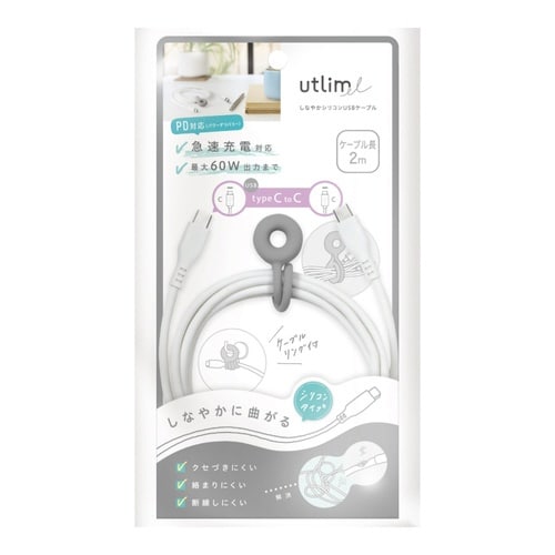 充電ケーブル しなやかシリコンUSBケーブル 2m USB−C&USB−C ユートリムエル