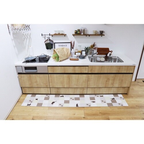 キッチンマット 拭ける PVC 45×240cm キャットシェイプ