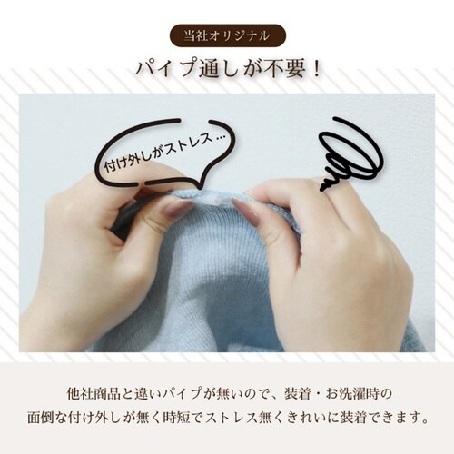 便座にきれいにフィットするように考えて作られた、O型便座専用カバーです。 面倒なパイプ通しが不要なので、お手入れも簡単です。 かぶせて留めるだけでキレイに装着できます。 |