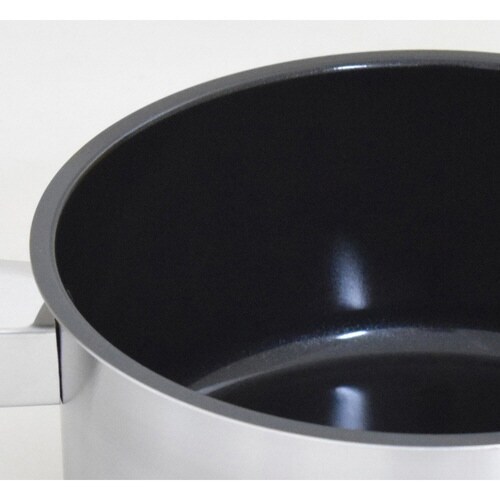 蓄熱性の高いステンレスと優れた熱伝導性のアルミニウムの全面3層構造です。 底厚1.0mmと極限まで薄く作られており、従来品と比較して「約43%軽量化」と驚きの軽さを実現しています。 |