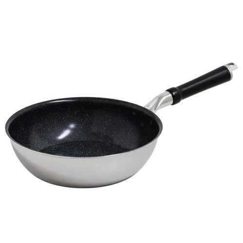 炒め物から煮込み料理まで、様々なメニューに対応する深型フライパンです。 こびりつきにくくキズが付きにくいマーブルセラミック加工です。 軽量設計なのであおりやすく、持ち運びや盛り付けも楽にできます。 |