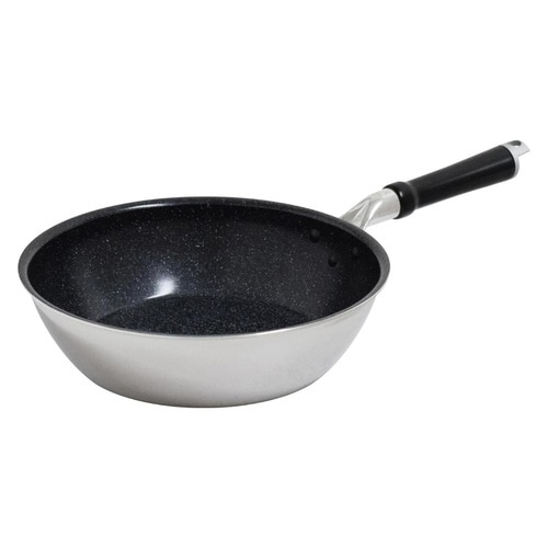 炒め物から煮込み料理まで、様々なメニューに対応する深型フライパンです。 こびりつきにくくキズが付きにくいマーブルセラミック加工です。 軽量設計なのであおりやすく、持ち運びや盛り付けも楽にできます。 |