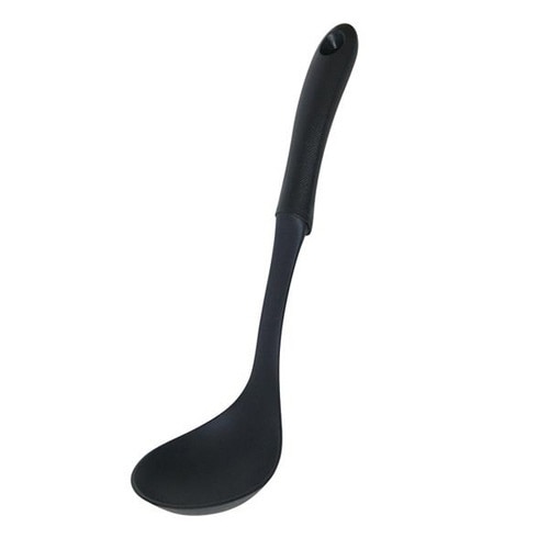 握りやすいグリップが付いたスタンダードなキッチンツールです。 ふっ素樹脂加工の鍋やフライパンの表面をキズ付けにくい樹脂製です。 本体は軽くて洗いやすく、熱にも強い66ナイロンを使用しています。 |