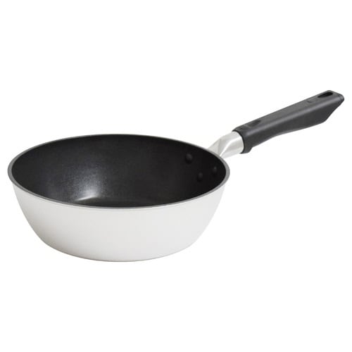 環境に優しくキレイが長持ちする深型フライパン22cmです。 傷が付きにくく油汚れが落ちやすい、ショットピーニング処理を側面に施しています。 |