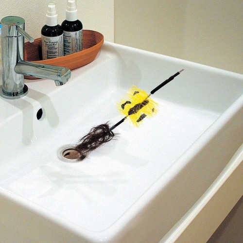 シンクやお風呂場、洗面所の排水口パイプに詰まったゴミや髪の毛を取り除けます。 先端の黒いブラシが髪の毛を絡め取り、黄色のブラシで水アカや汚れをゴシゴシ落とします。 |