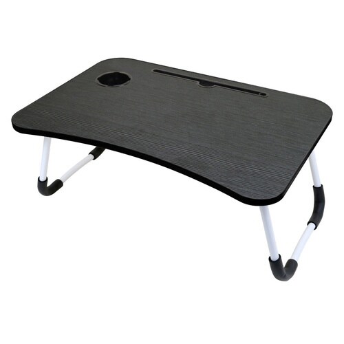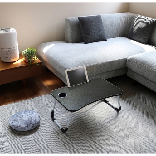 折りたたみテーブル 幅60cm ドリンクホルダー付 PC作業 ブラック