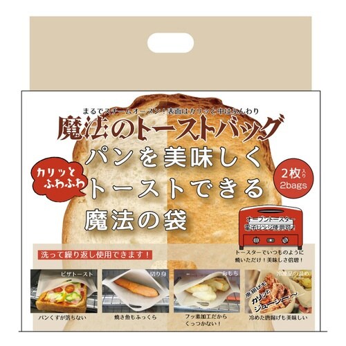 パンを美味しくトーストできる魔法の袋2枚入りです。 スチームオーブンのように表面はカリッと中はふんわりと焼くことができます。 オーブントースターと電子レンジの使用が可能です。 |