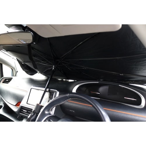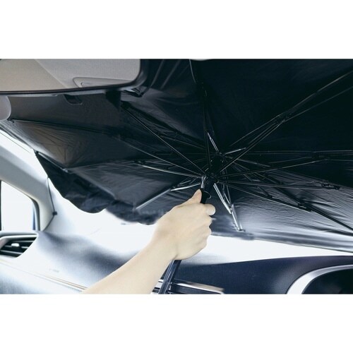 傘のように開くだけで簡単にフロントガラスに設置できます。 ドアポケットなど手に取りやすい場所に保管できるコンパクトサイズです。 UVカット99%・UPF50+です。 |