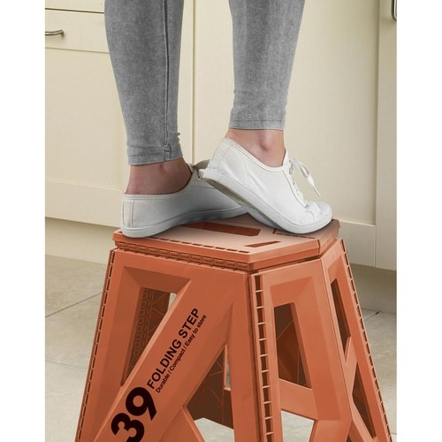 使いやすさが大人気の踏み台、セノ・ビーシリーズの踏み台です。 ちょっと高さが欲しい時に、サッと取り出して使える高さ39cmタイプです。 使わないときは簡単に折りたためてスリムになります。 |