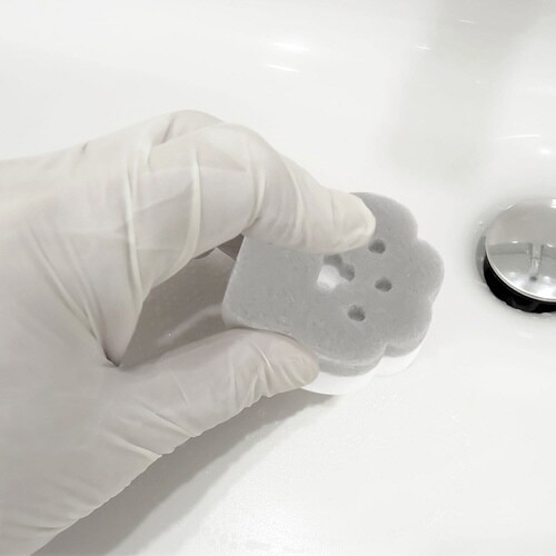油性ペンやガラスの汚れ、水垢や茶渋まで簡単に落とすことができるメラミンスポンジです。 水をつけてこするだけで落ちるので洗剤不要でエコです。 |