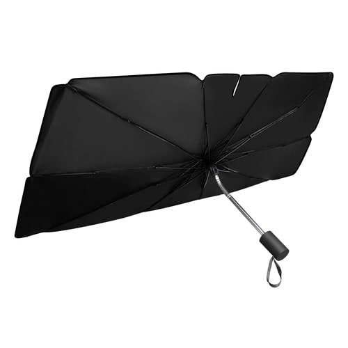 傘のように開くだけで簡単にフロントガラスに設置できます。 柄が曲がるのでカーナビを避けて設置することができます。 ダッシュボードを傷つけずにしっかり支えて安定性抜群です。 |