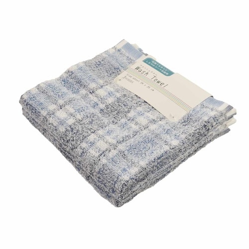 ハンドタオル コーマクロスチェック 34×35cm 3枚組 ブルー