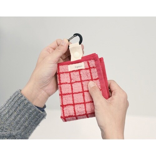 バッグやポケットにしまわずに持ち運べる身に着けるタオルです。 お出掛けの時にすぐ使用できるので便利です。 カラビナなどでジーンズやバッグなどに吊り下げることができます。 |