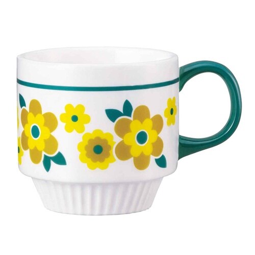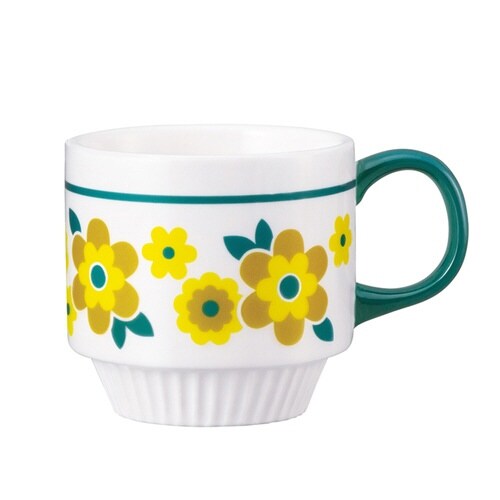 花輪のようにぐるりとまわった柄が可愛いマグカップです。 昭和を感じるレトロポップで懐かしいデザインが食卓を華やかに彩ります。 マグカップの高台部分はレリーフが施されており、豊かな表情をもたらします。 |
