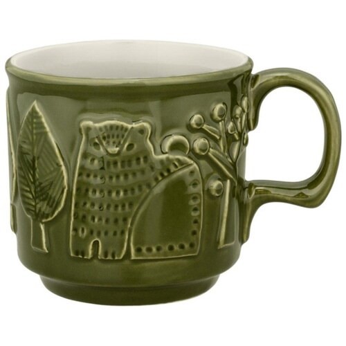 アニマル柄のレリーフ模様が入ったマグカップです。 1回の食事やティータイムにちょうど良い容量約230mlです。 艶やかながら落ち着きのある色合いとアニマル柄のレリーフの凹凸が特徴です。 |