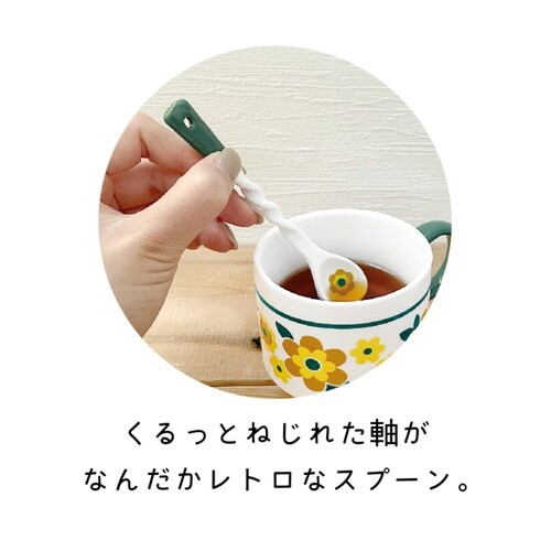 ちょっとレトロな陶器製スプーンです。 柄がくるっとねじれているデザインが可愛いです。 ティースプーンとして使うのにちょうどいい大きさです。 |