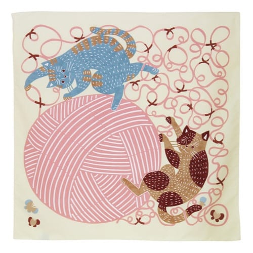 風呂敷 中判 70cm 撥水 katakataむすび アクアドロップ ネコと毛糸 イエロー エコバッグ