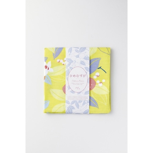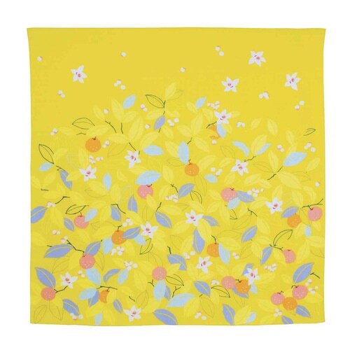 70cm四方の中判サイズの風呂敷です。 「ひめむすび」は日本の伝統的なモチーフを独特な色彩感覚で表現しています。 平面でも包んでも美しく見えるシトラスのデザインです。 |
