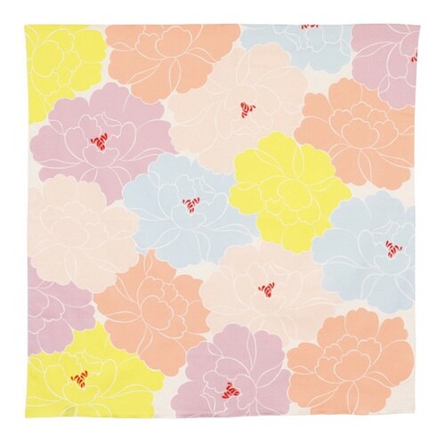 優しい色合いの牡丹が可愛らしい大判の風呂敷です。 パリ在住フランス人デザイナー・アデリーヌ・クラムとふろしきブランドむす美のコラボレーションによって生まれました。
