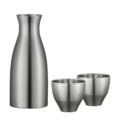 美しいステンレス製の酒器セットです。 徳利は真空二重構造のため、冷酒も熱燗もお好みの温度で長時間キープできます。 外側が熱くならないので熱燗を入れても安心して持つことができます。 |