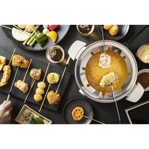 おうちの食卓で揚げたての串揚げが食べられます おいしく揚がる高温設計 串揚げ以外もいろいろ楽しめる コンパクトでスタイリッシュ 安心設計の深い鍋 |