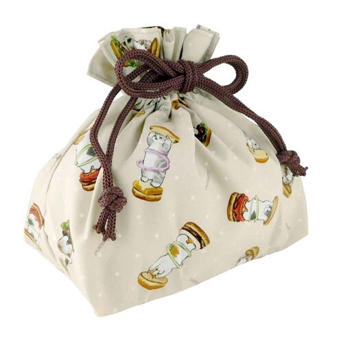 モフサンドの巾着袋です。 巾着袋なのでかさばらず、お弁当の持ち運びに便利です。 マチが11cmあるのでお弁当箱を入れても安定して持ち運ぶことができます。 |