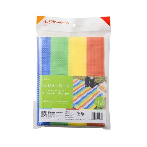 定番のストライプ柄のレジャーシートです。 約1畳2から3人用レジャーシートです。 遠足や行楽レジャー、運動会、キャンプに最適です。 |