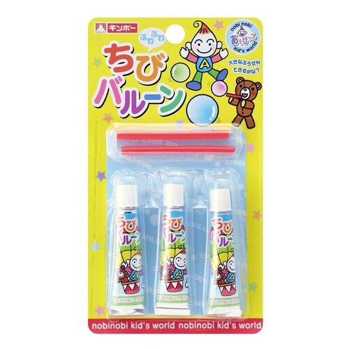 割れないシャボン玉のような、面白さたっぷり、懐かしい遊び「ちびバルーン」です。 パイプの先に原液を巻き付けて吹くだけで、ふわふわの風船が簡単にできます。 |