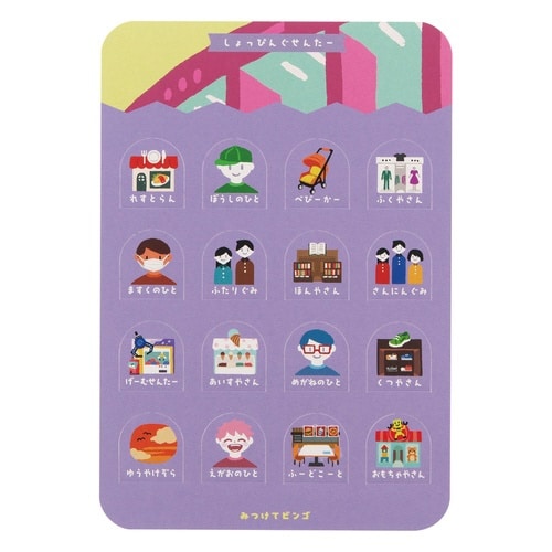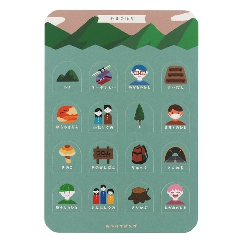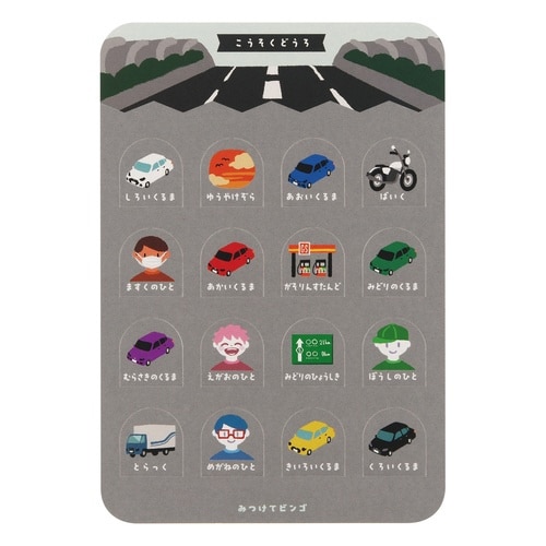 お散歩やお出かけ中に遭遇しそうなもののイラストが描かれているビンゴカードです。 ビンゴカードを持って、ビンゴに描かれたものを探しに行き、見つけたらビンゴの穴を開けていきます。 |