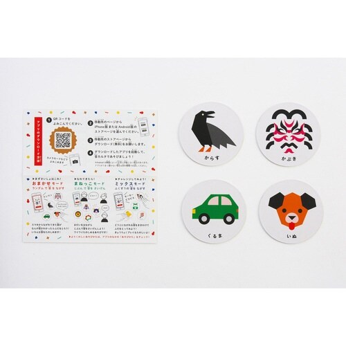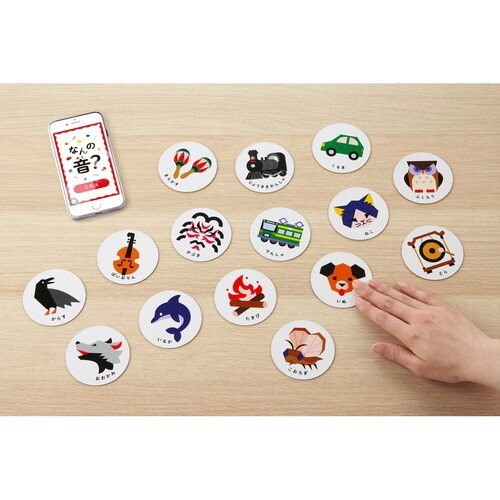 効果音を読み札にした新感覚カルタです。 身近なものから珍しい音まで、57種類の音で遊べます。 スマホのアプリから音を流すので、読み人が不要なのも嬉しいポイントです。 |