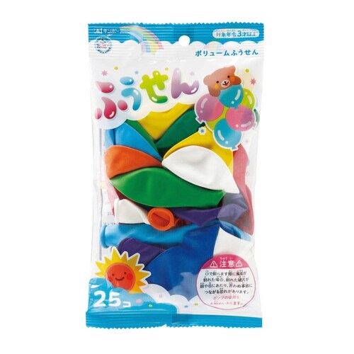 楽しく遊べるふうせんがたっぷり25個入ったボリュームセットです。 パーティーやイベントでの飾り付けにもお使いいただけます。 ヘリウムガスも使えます。 ふうせんは約25cm程膨らみます。 |