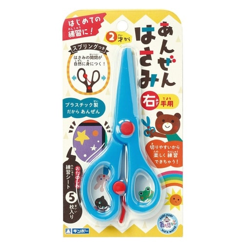 安全なプラスチック製なので、初めての練習にぴったりです。 ハサミの開閉が自然と身につくスプリングが付いています。 練習シート5枚入りです。 対象年齢は3歳以上です。 |
