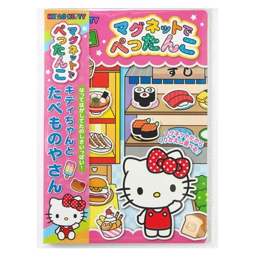 何度も貼ってはがせるキティちゃんのマグネットブックです。 食べ物のマグネットをお店シートに貼り付けて遊ぶことができます。 裏面ではレストランごっこが楽しめます。 |