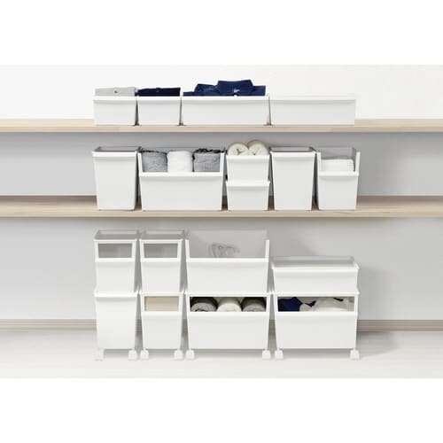 ワイド浅型・ワイド深型と専用フタ、キャスターがまとまった使い勝手のよいセットです。 「見せる」と「隠す」を切り替えできます。 抜群の収納力ながらすっきりした見た目です。 |